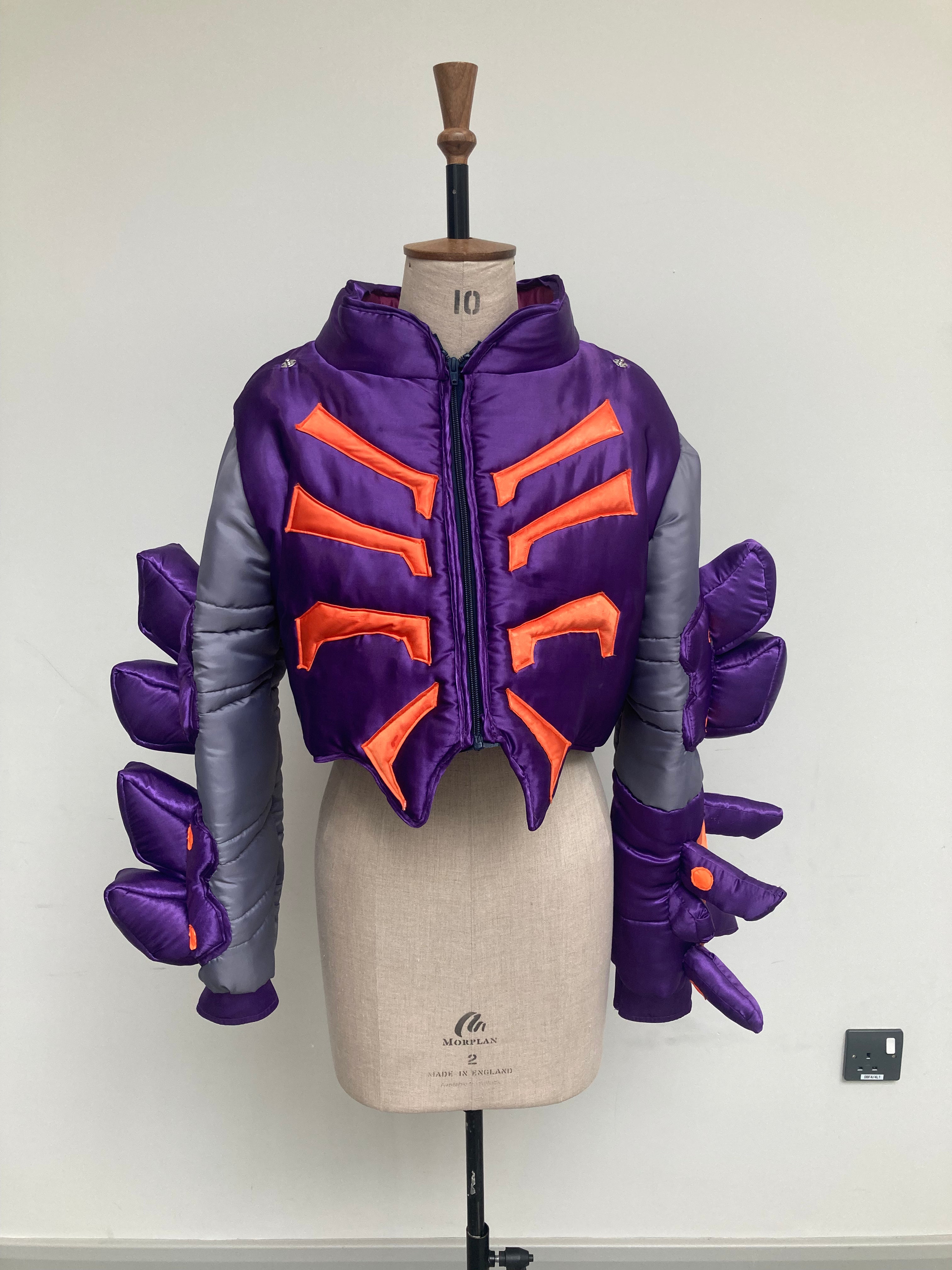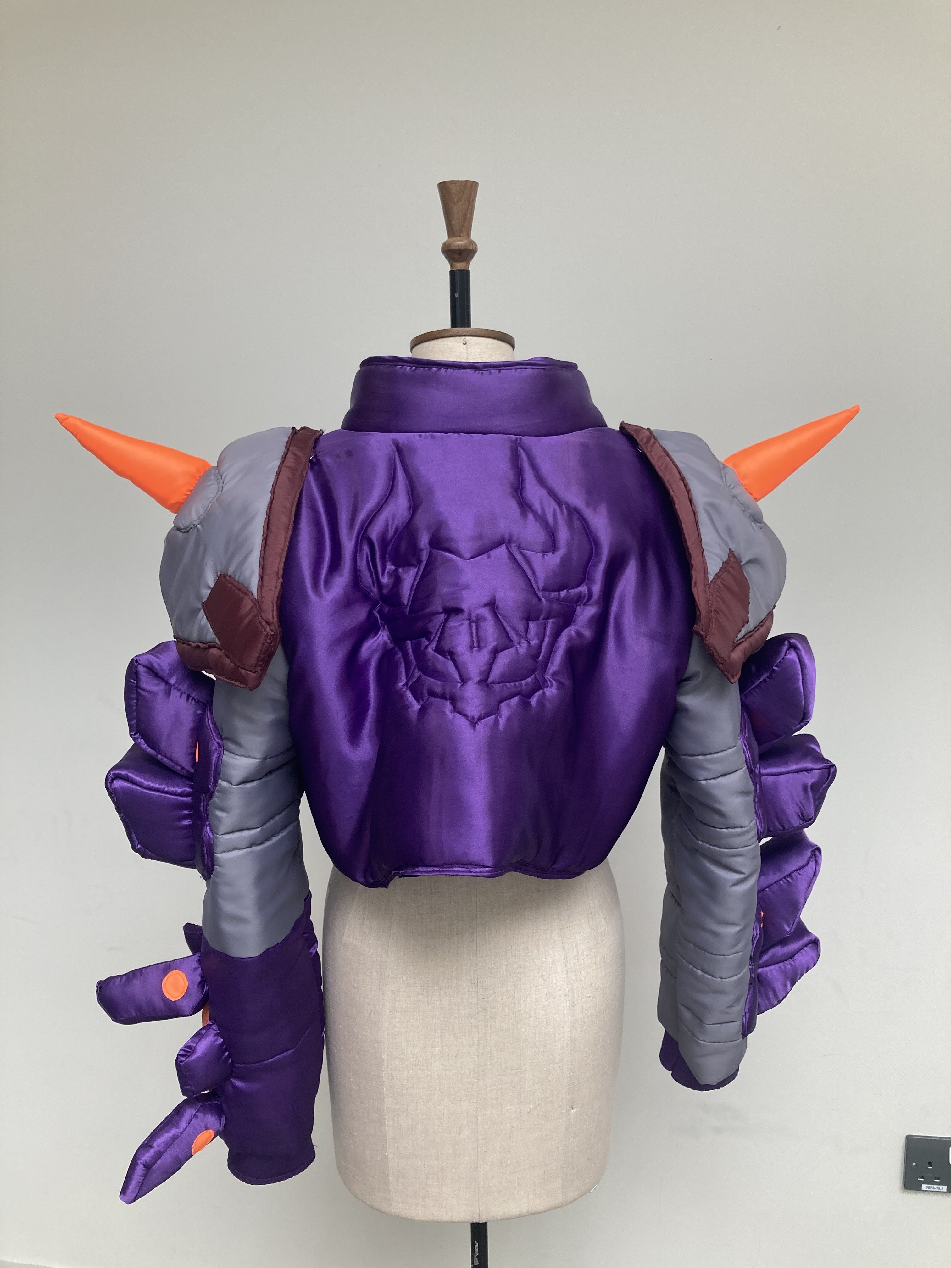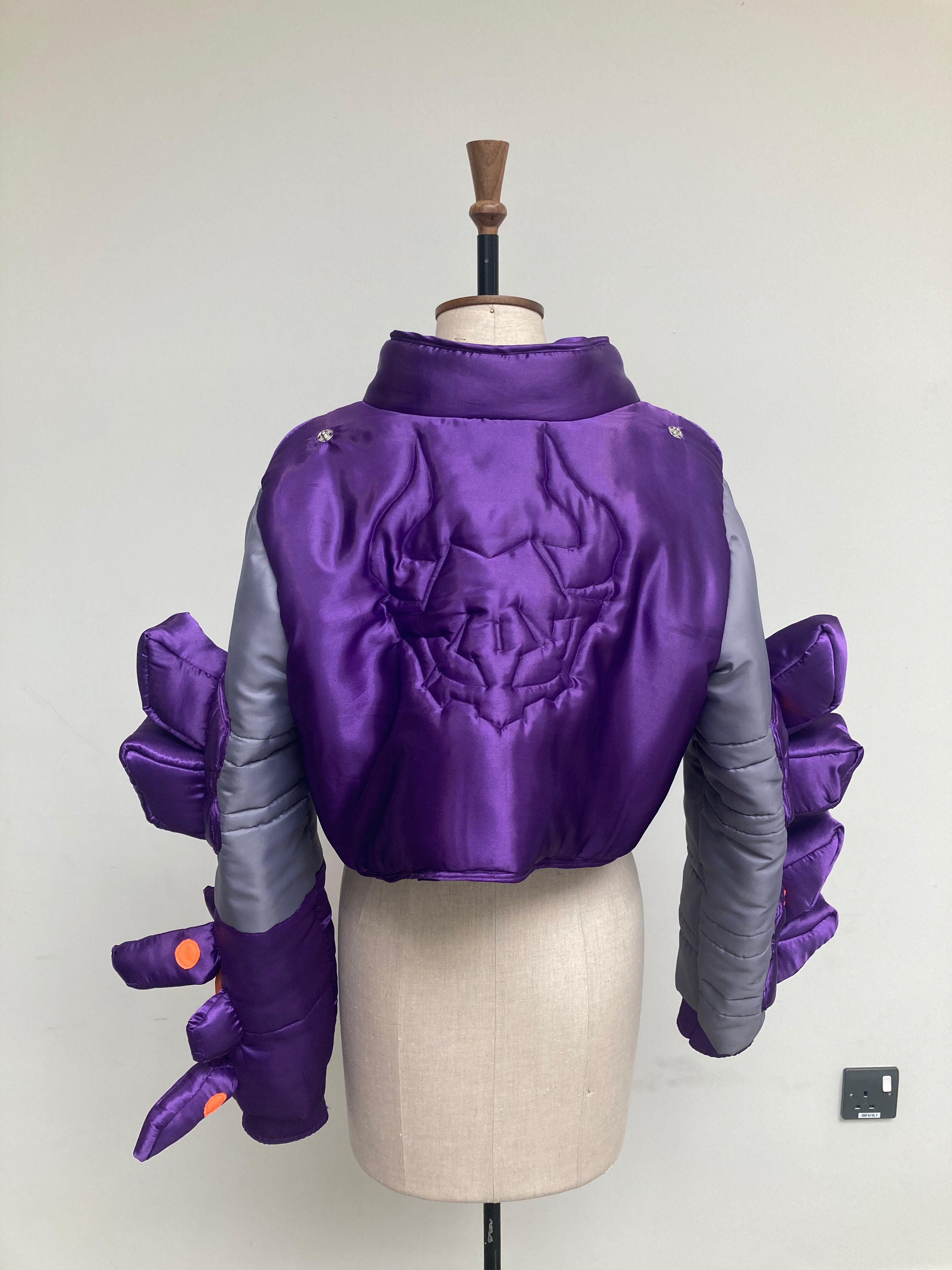 Created as a nod to the unique styles seen in the Harajuku district of Tokyo, this jacket was inspired by the series "Kamen Rider" as a playful homage to the pop culture influences that riddle this fashion scene.